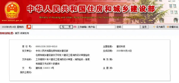 新規(guī) | 住建部發(fā)布《建設(shè)工程消防設(shè)計審查驗收工作細則》及相關(guān)文書式樣